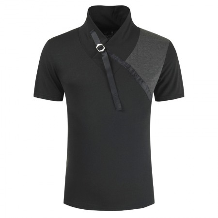 Summer Color Matching Business Casual Shirt Lapel T-Shirt Men's Shirt Collar Short-Sleeved Shirt Work Bottoming Shirt