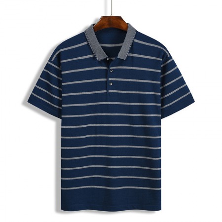 New Summer Men's Hooded Striped Lapel T-Shirt Mens Lapel Short Sleeve